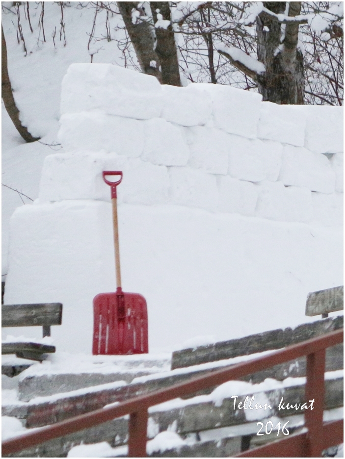 Yksinäinen lapio nojasi luistinradan reunalla...